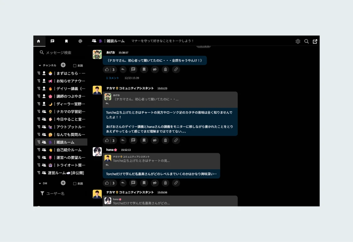 この講座では、「Fincs(フィンクス)」というコミュニティ学習に特化した最高峰のプラットフォームを使用します。
